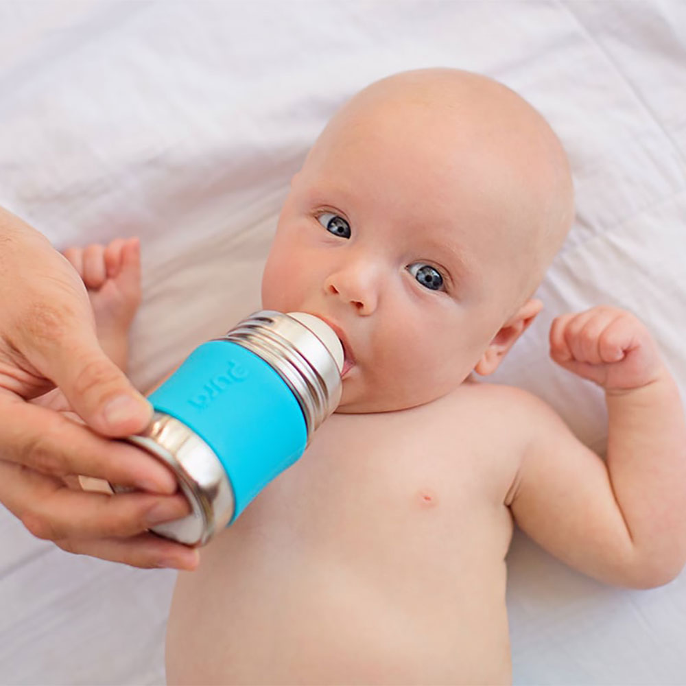 Konečne bezpečná fľaša vyrobená 100% bez plastových častí. S Pura fľašami si môžete byť istí, že sa do nápoja vnútri neuvoľňujú žiadne škodlivé látky a toxíny, ani príchute a pachy ako je tomu u plastových fliaš alebo fliaš s plastovými vrchnákmi. Na ničom nezáleží viac ako na zdraví Vašich detí a Vás.Pura fľaše sa navyše prispôsobujú a “rastú” s Vašim dieťaťom. Jednoduchou výmenou uzáverov sa fľaša mení z dojčenskej fľaše na fľašu s náustkom, slamkou alebo športovým uzáverom či na pohárik na príkrmy a občerstvenie. Môžete tak jednu fľašu používať mnoho rokov. One Life… One Bottle™.Najbezpečnejšia, najuniverzálnejšia, ľahká a nerozbitná ekologická fľaša ocenená viac ako 35 oceneniami. Prvá fľaša na trhu 100% bez plastových častí a jediná fľaša, ktorá získala certifikát Made Safe® . Baby Grows… Bottle Evolves™ – patentovaný systém umožňuje použiť akúkoľvek Pura fľašu s akýmkoľvek Pura uzáverom. Jednoducho tak zmeníte dojčenskú fľašu na fľašu s náustkom, slamkou, alebo športovým uzáverom alebo s použitím tesniaceho disku na pohárik na príkrmy a drobné občerstvenie. Jednu fľašu tak môžete používať roky a zároveň šetríte peniaze aj životné prostredie. Fľaša a objímka sú vyrobené z prvotriednej potravinárskej nerezovej ocele triedy 304 (18/8) a ostatné časti zo silikónu najvyššej medicínskej kvality. Bez BPA, PVC, ftalátov a bez akýchkoľvek iných nebezpečných látok a toxínov, testované podľa smerníc EÚ. Antikolikový cumlík Pura Natural Vent Nipple s pomalým prietokom vyrobený zo silikónu medicínskej kvality. Fľaša je kompatibilná s cumlíkmi mnohých iných značiek. Mierka na vnútornej strane pre pohodlné a presné dávkovanie. Súčasťou je silikónový vrchnák chrániaci cumlík a vymeniteľný farebný silikónový návlek na fľašu pre lepšie uchopenie a izoláciu. Vhodné do umývačky riadu. Doživotná záruka na časti z nerezovej ocele. Nevzťahuje sa na mechanické poškodenie fľaše. Objem celkom: 150mlObjem značený: 100mlVáha: 118gRozmery: 5,7 x 12,7cmBalenie obsahuje: nerezovú fľašu 150ml, nerezovú objímku, antikolikový cumlík Pura Natural Vent Nipple (pomalý prietok), silikónový návlek, silikónový vrchnák