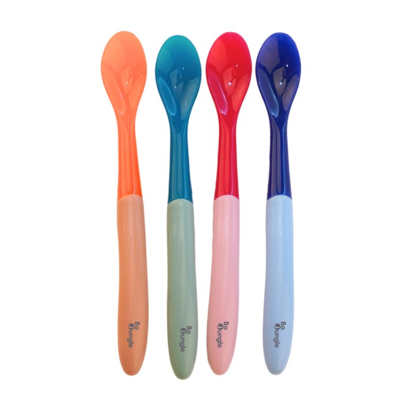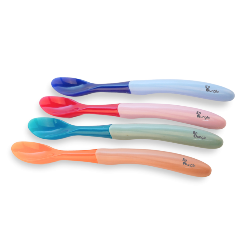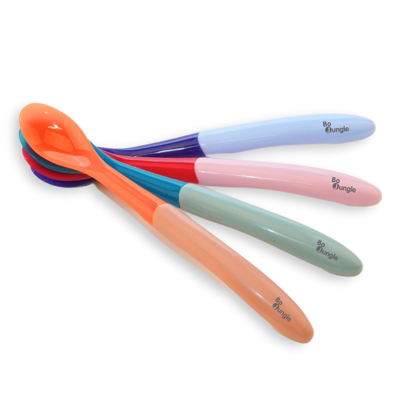 Sada termolyžičiek, ktoré zmenia farbu, keď je jedlo príliš horúce. Sú vyrobené z mäkkého materiálu bez BPA, ktorý je šetrný k ďasnám a bezpečný na každodenné použitie. Sú ľahké, odolné a ľahko sa čistia, takže sú perfektnou voľbou pre bezstresové kŕmenie doma aj na cestách.