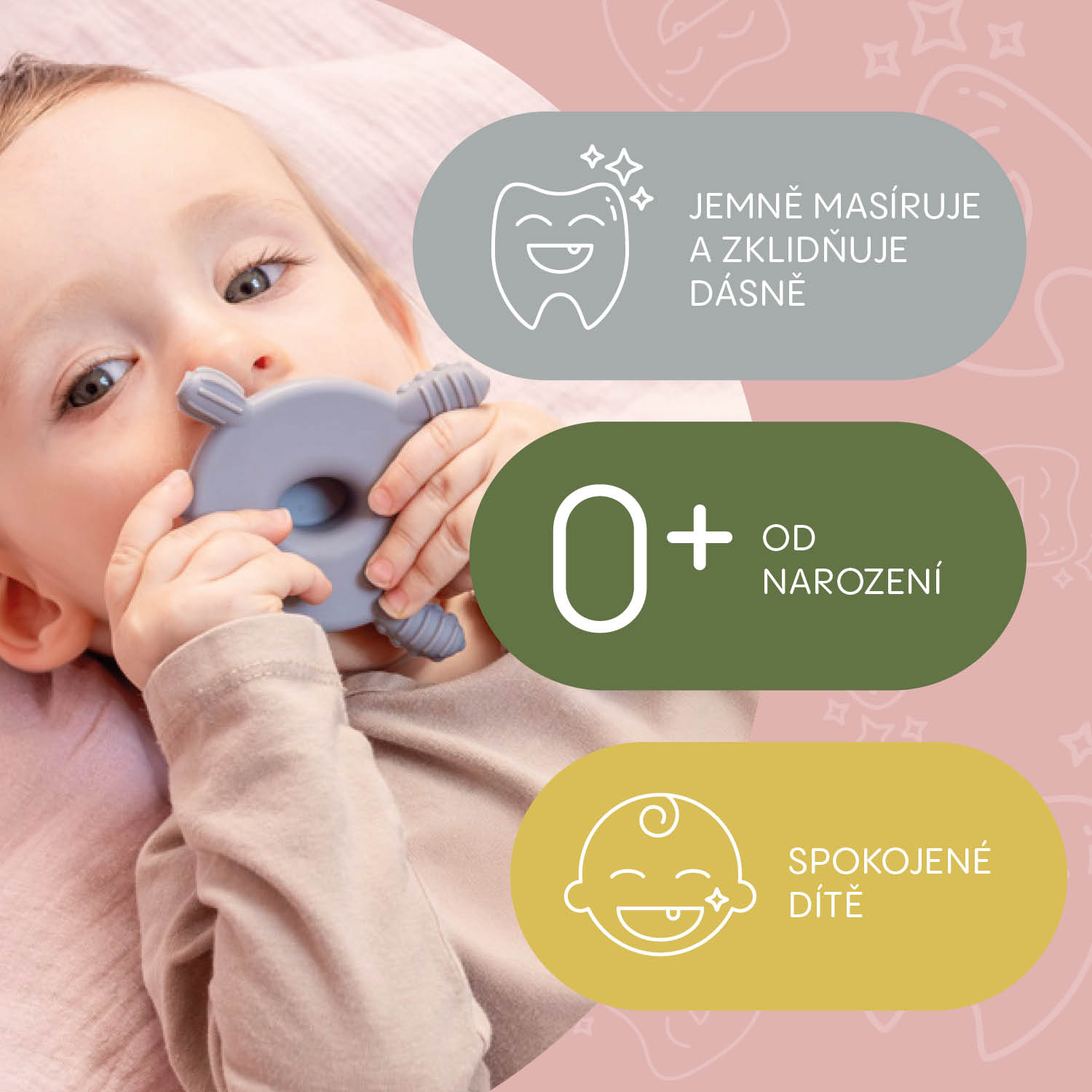 na obdobie prerezávania zúbkov, ktorý poskytuje úľavu od bolesti a súčasne