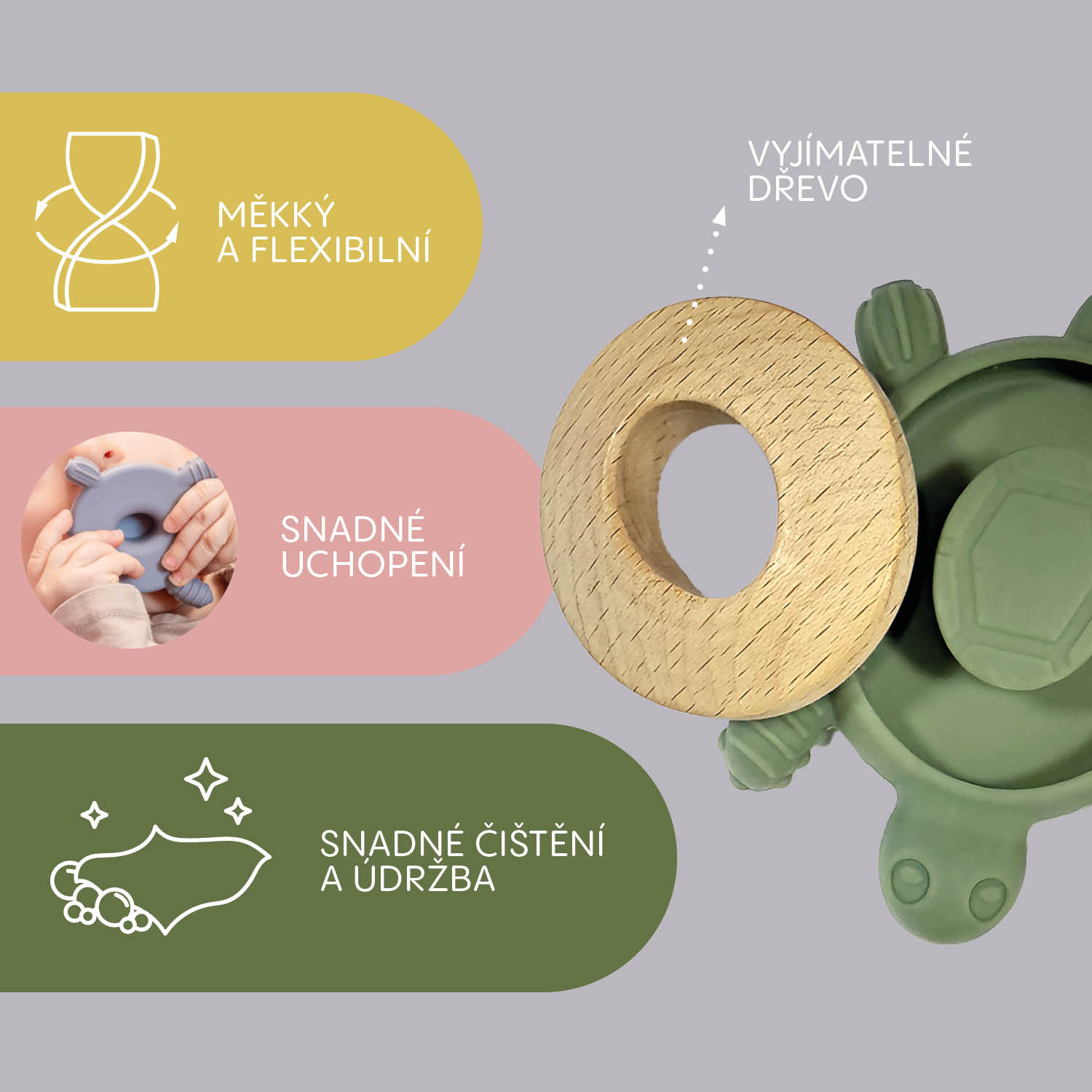 korytnačky, ktoré spája prírodné drevo s bezpečným silikónom. Ideálny spoločník