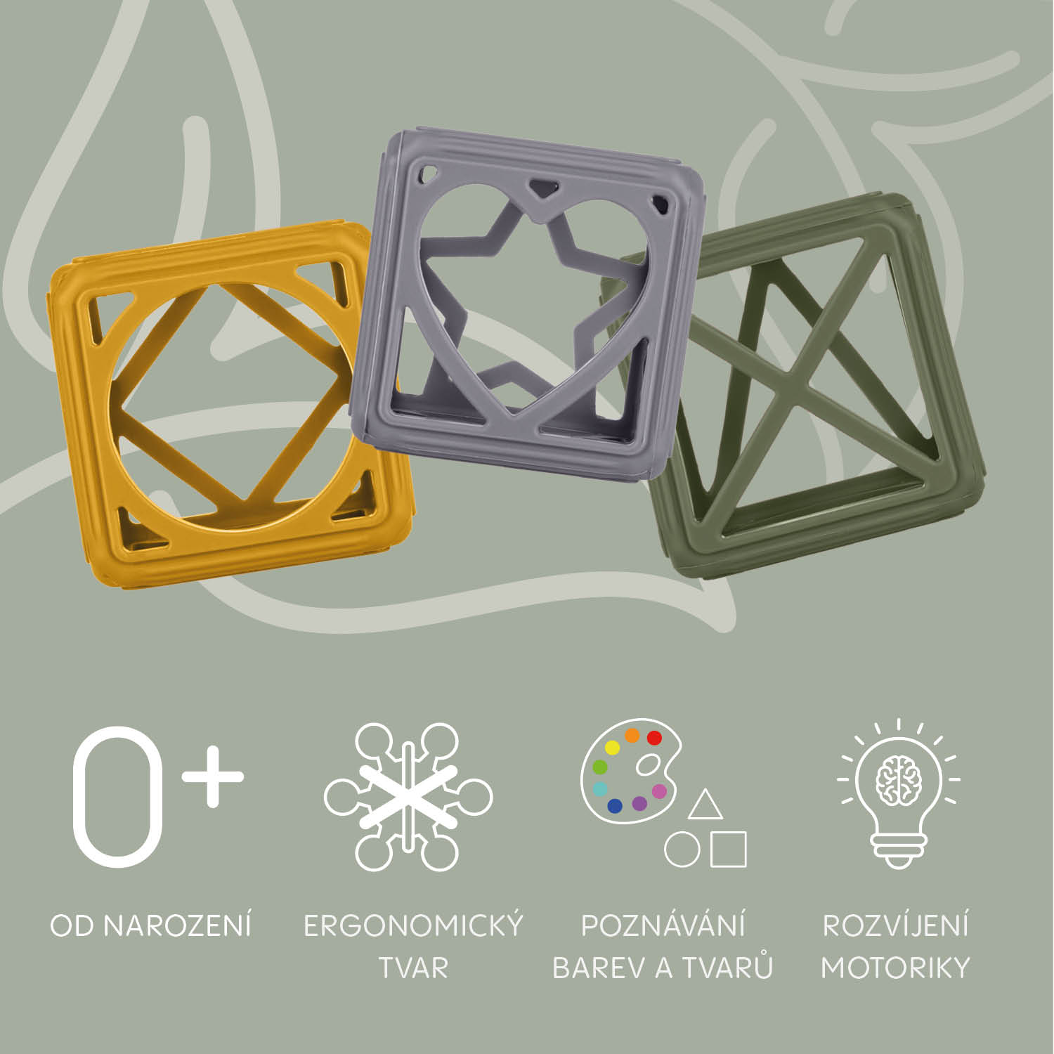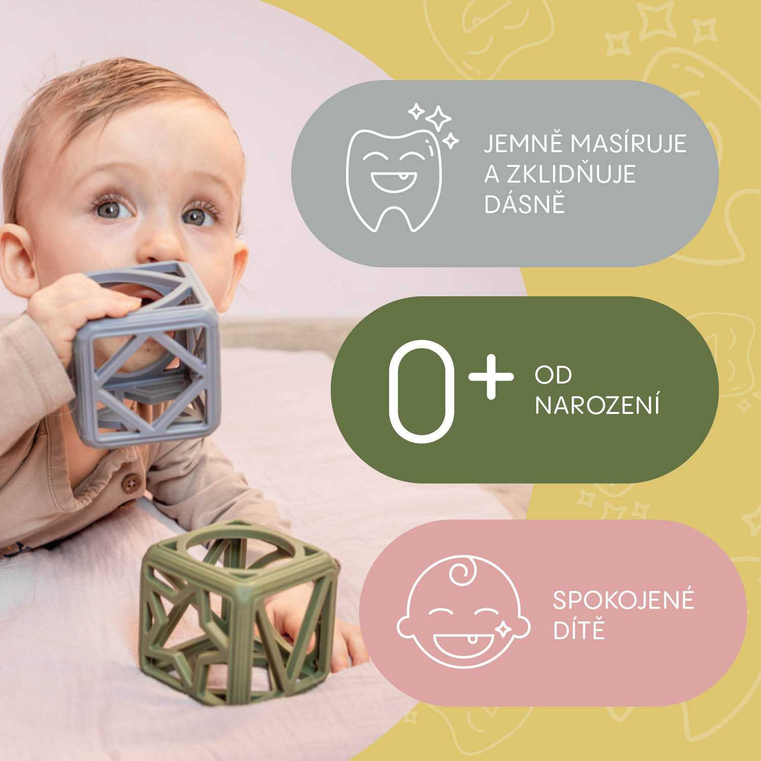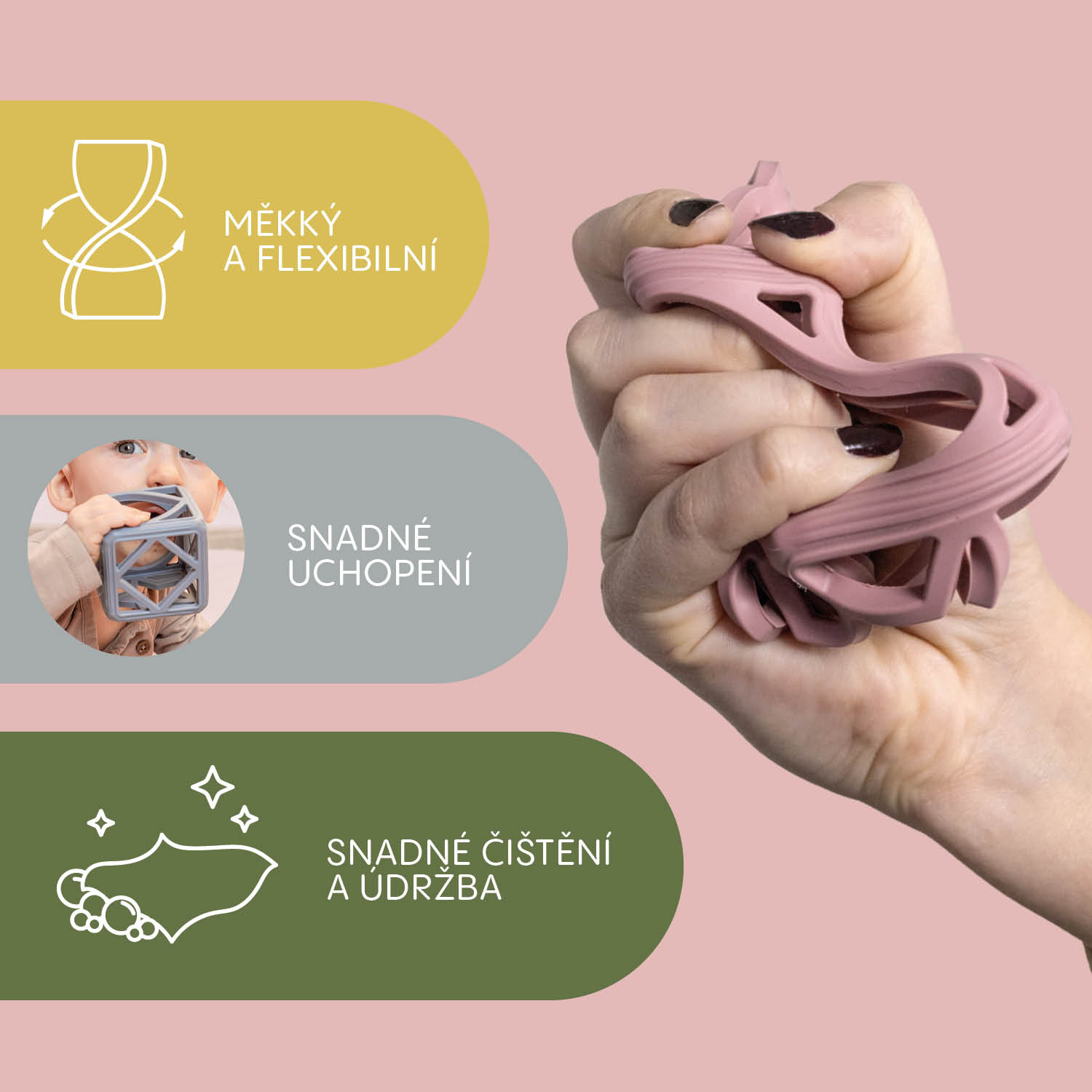 silikónovým hryzátkom Square. Jeho jedinečný geometrický tvar skvele padne do