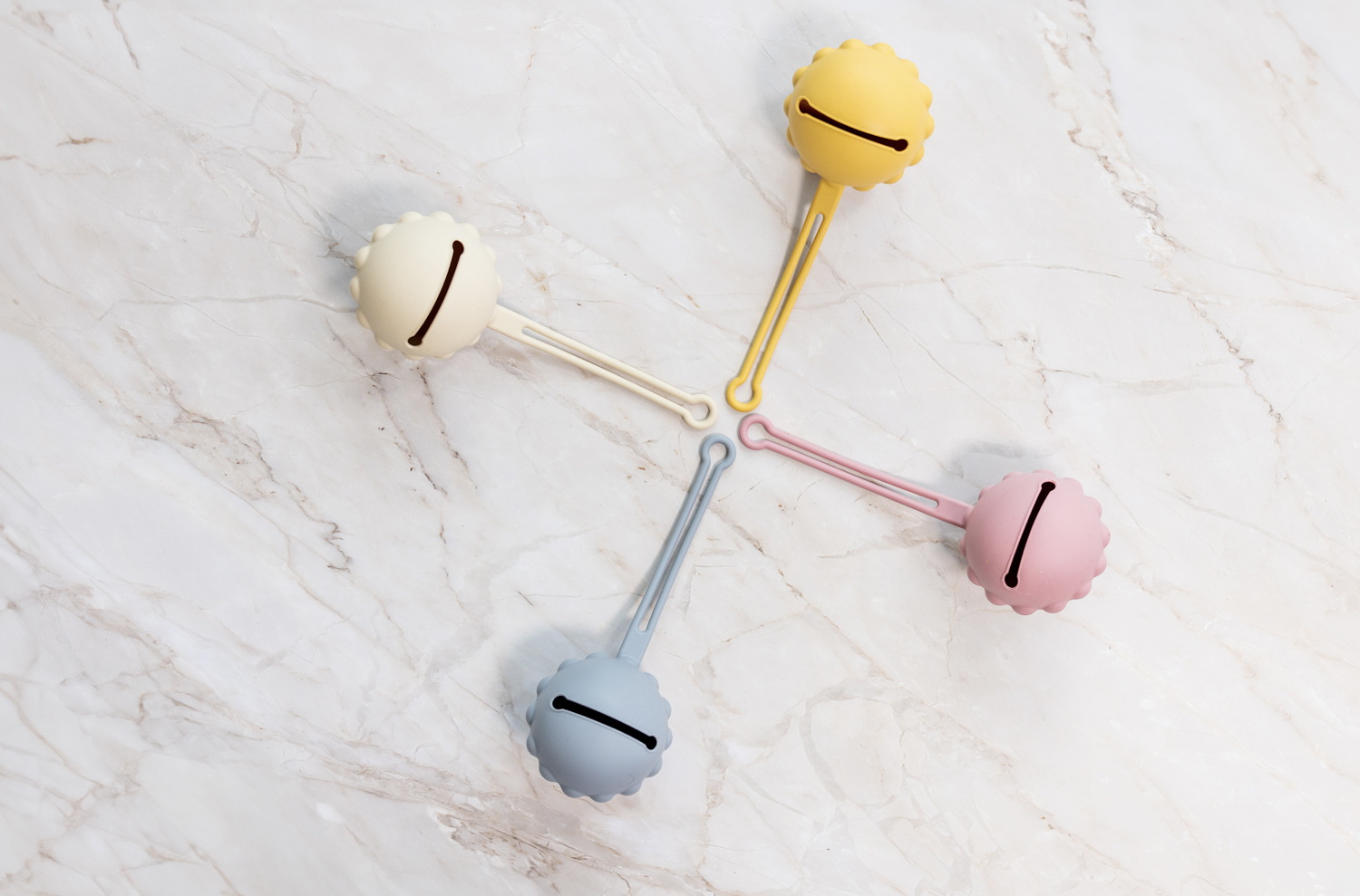 silikónovému pútku ľahko pripevniť na rám kočíka, ucho kabelky alebo k taške na