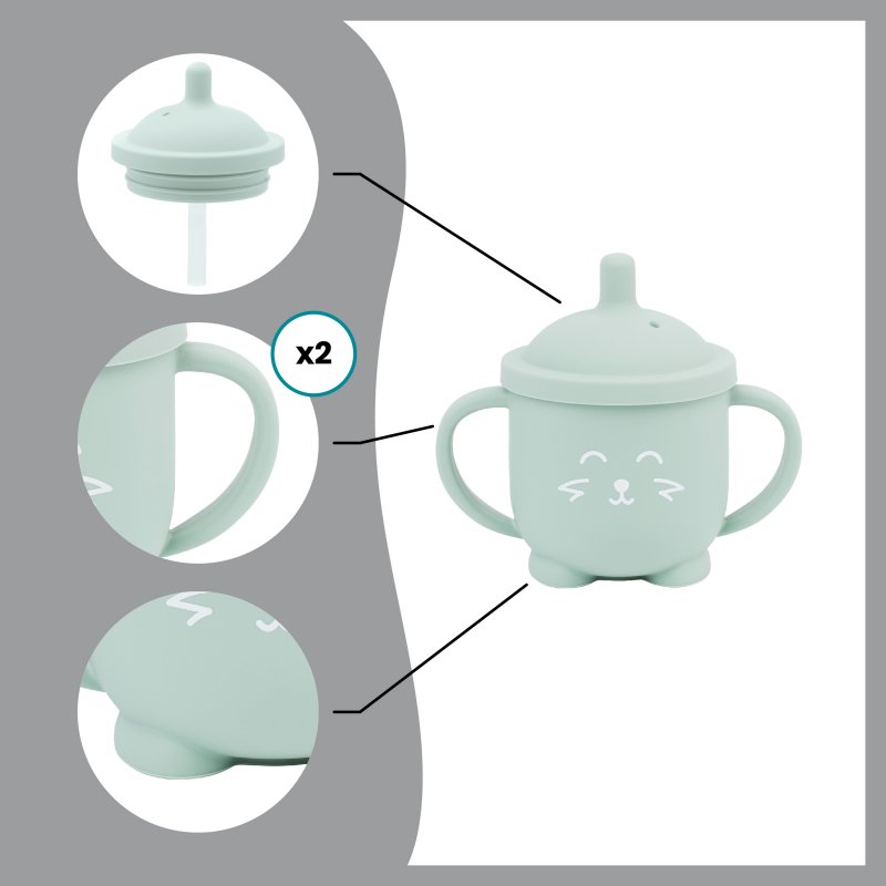 • tréningový hrnček špeciálne navrhnutý tak, aby pomohol malým deťom naučiť sa samostatnosti