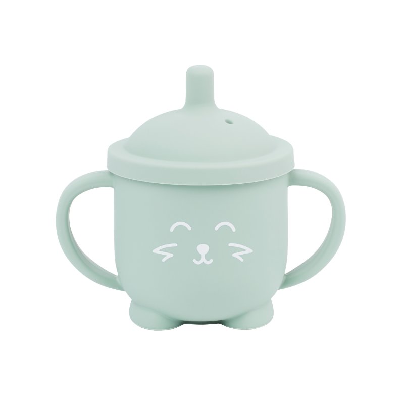 Celosilikonový hrnček s náustkom a úchytmi, ktorý pomôže dieťatku naučiť sa samostatne piť!