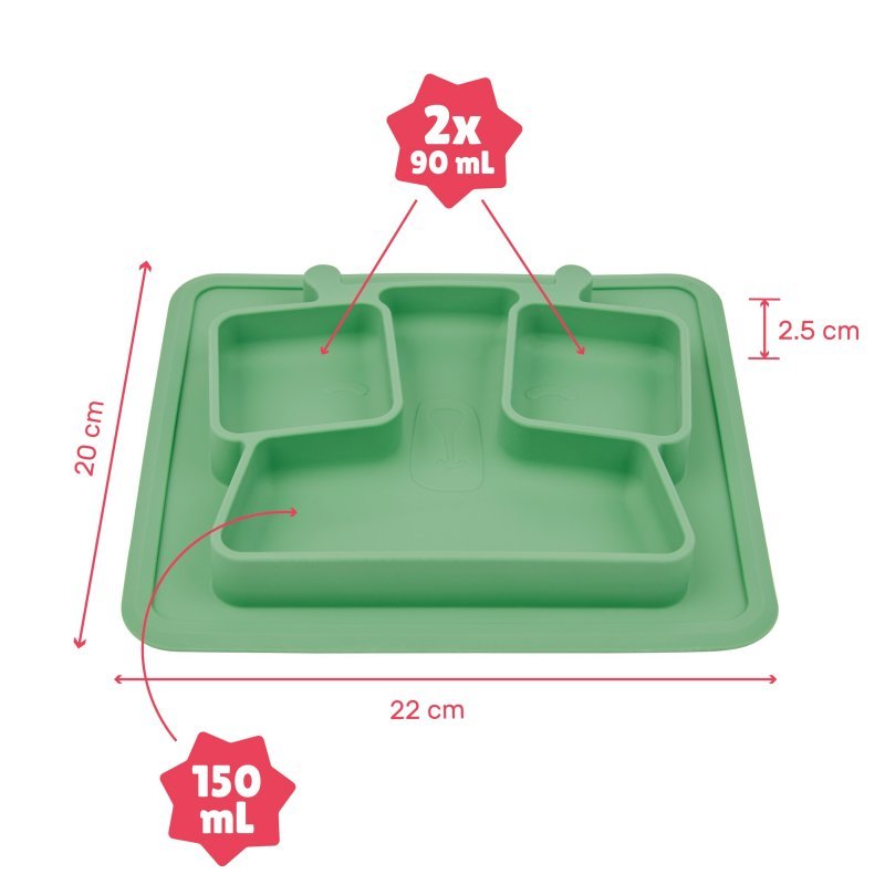 Protišmykový silikónový tanierik s priehradkami na rôzne jedlá.