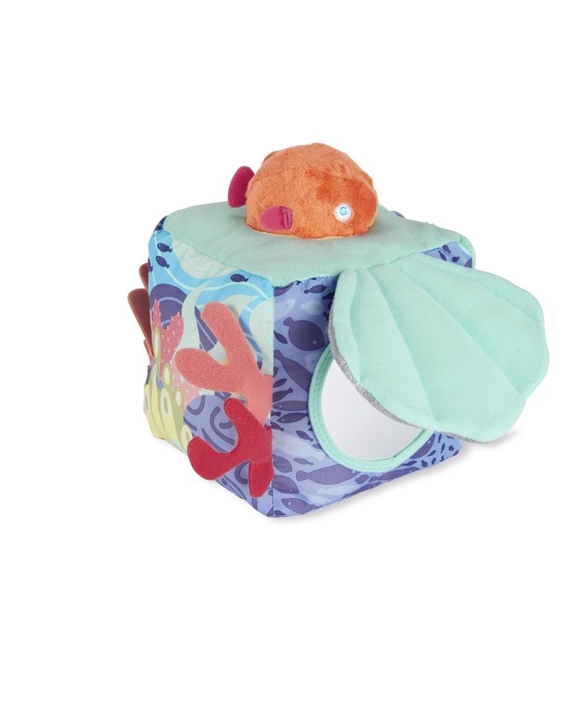 Ponorte sa do nekonečnej zábavy! Naša mäkká kocka aktivít inšpirovaná morom, ktorá je plná viacerých mäkkých textúr, zvukov šušťania a ďalších vecí, ktoré môže dieťa preskúmať, podporuje viaczmyslové skúmanie počas hry. Obsahuje rybiu hrkálku, pokrčenú škrupinu so skrytým detským zrkadielkom, hračku na hryzenie rýb a mnoho ďalších oceánskych pokladov, ktoré môžete objaviť.