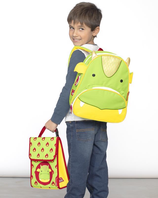 Krásny batôžtek s motívom zvieratka. Nový vzhľad desiatového batôžteka je navrhnutý tak, aby jedlo a nápoje ostali čerstvé. Mäkký izolovaný interiér udržuje jedlo a nápoje studené. Hlavná priehradka má nastaviteľný háčik – úzaver. Na strane je umiestnené priestranné sieťované vrecko vhodné na pitie. Horná rukoväť batôžteka je so sponou. Prepracované detaily batôžteka ladia s veselými motívmi z kolekcie Zoo.