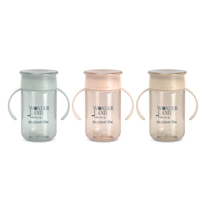 Dôležitým krokom vo vývoji detí je naučiť sa piť bez Vašej pomoci. 360 ° hrnček radu WONDERLAND od značky Suavinex je vhodný pre učenie samostatného pitia pre batoľatá a skvelý pre prechod ku klasickému hrnčeku. S týmto učiacim hrnčekom si Vaše dieťa zlepšia svoje schopnosti, pretože hrnček umožňuje piť bez rozliatiu tekutiny z akejkoľvek časti horného okraja vďaka ventilu. Nepriepustné veko zabráni vyliatiu tekutiny pri prevrhnutí hrnčeka a vyteká iba pri kontakte s detskými perami. Hrnček má držadlá vhodná pre drobné detské ruky, ktoré umožnia jej ľahké uchopenie.