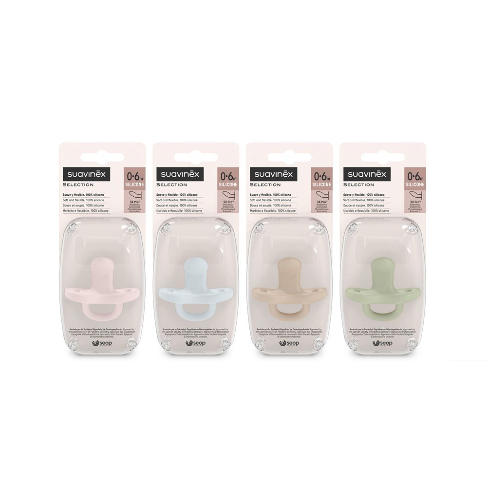 Mäkučký celosilikónový cumlík Colour essence sx pro od značky Suavinex v pastelových farbách – vyrobený z jedného kusu silikónu, s ergonomickým štítkom, ktorý sa prirodzene adaptuje s potrebami detí, bez chuti a bez zápachu.