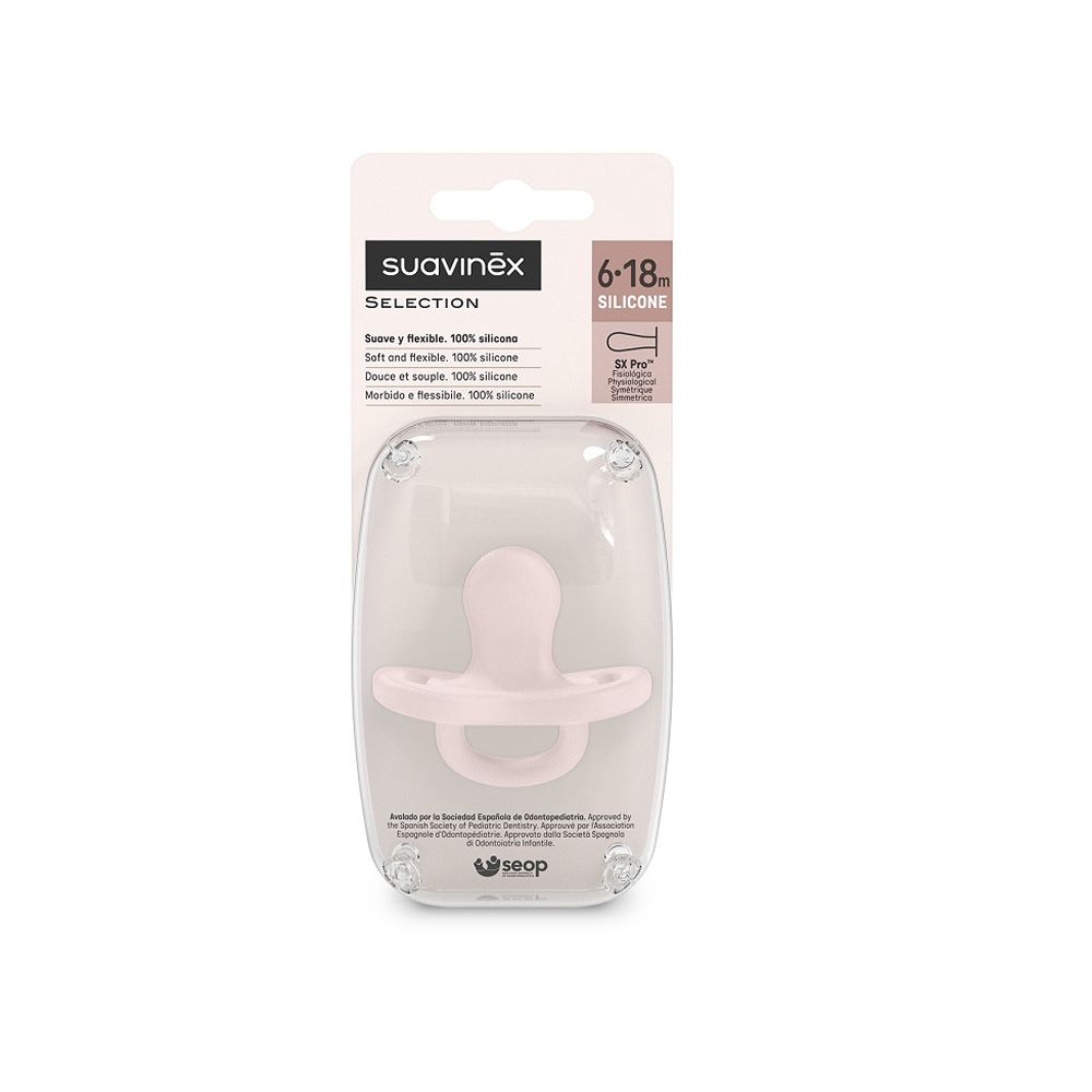 SUAVINEX | CUMLÍK fyziologický SILIKON 6-18m SX PRO – COLOUR ESSENCE – ružové
