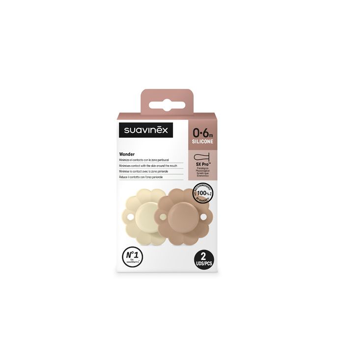 SUAVINEX | Cumlík SX PRO fyziologický 2 KS WONDER 0/6m – Whitecap Gray + Cork