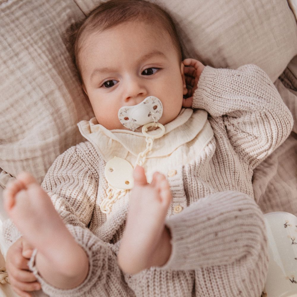 Je veľkým pomocníkom pre kľud vás i vášho dieťatka, či už pri spánku alebo na prechádzke. Je dokázané, že sanie cumlíka uvoľňuje endorfín, takzvaný hormón šťastia, ktorý prináša dieťatku príjemný ukľudňujúci pocit. Doprajte dieťatku cumlík miesto prstov či pestičky, pretože tento spôsob ukľudňovania môže veľmi porušiť budúci dentálny vývoj. Všetky cumlíky sú podporované a vyrábané v spolupráci s Asociáciou španielskych detských ortodontistov a rešpektujú prirodzený vývoj ďasien, zubov i podnebia dieťatka.