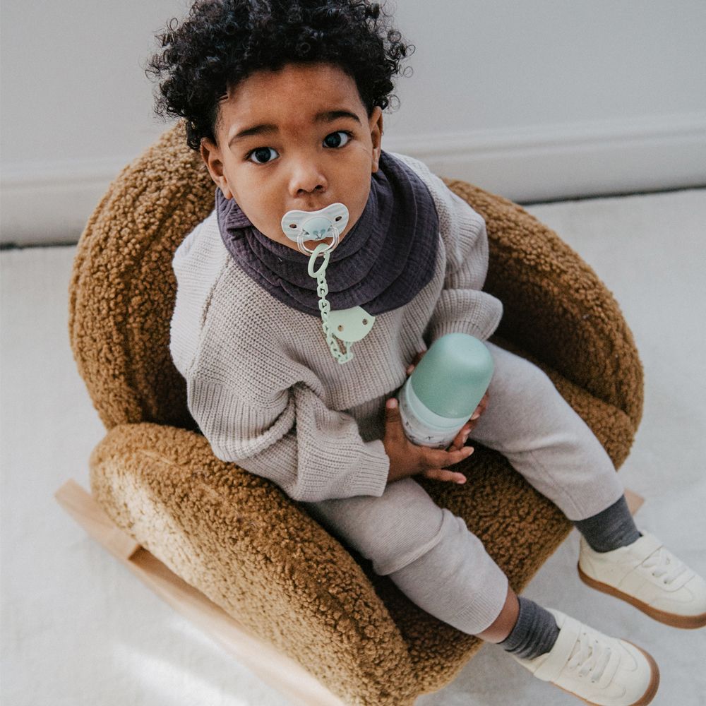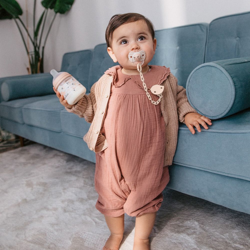 Je veľkým pomocníkom pre kľud vás i vášho dieťatka, či už pri spánku alebo na prechádzke. Je dokázané, že sanie cumlíka uvoľňuje endorfín, takzvaný hormón šťastia, ktorý prináša dieťatku príjemný ukľudňujúci pocit. Doprajte dieťatku cumlík miesto prstov či pestičky, pretože tento spôsob ukľudňovania môže veľmi porušiť budúci dentálny vývoj. Všetky cumlíky sú podporované a vyrábané v spolupráci s Asociáciou španielskych detských ortodontistov a rešpektujú prirodzený vývoj ďasien, zubov i podnebia dieťatka.