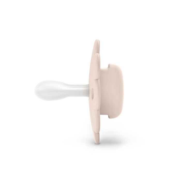 Konvexný štítok cumlíka je navrhnutý skosený von, čo pomáha cirkulácii vzduchu medzi cumlíkom a nosnými dierkami.