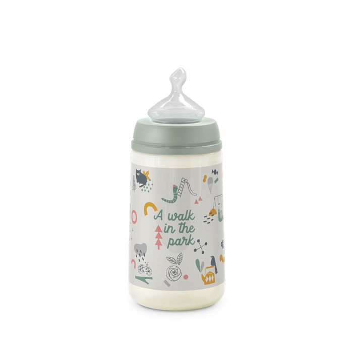 SUAVINEX | Dojčenská fľaša Walk anatomická M silikón 270 ml – zelená