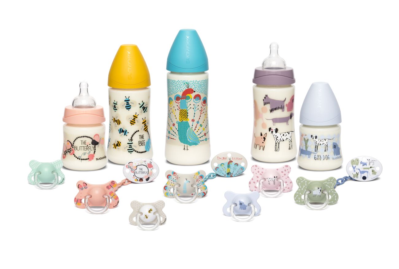 Fľaše je radosťou kombinovať spolu s oválnymi klipy a cumlíky radu Fusion dizajnovej značky Suavinex.