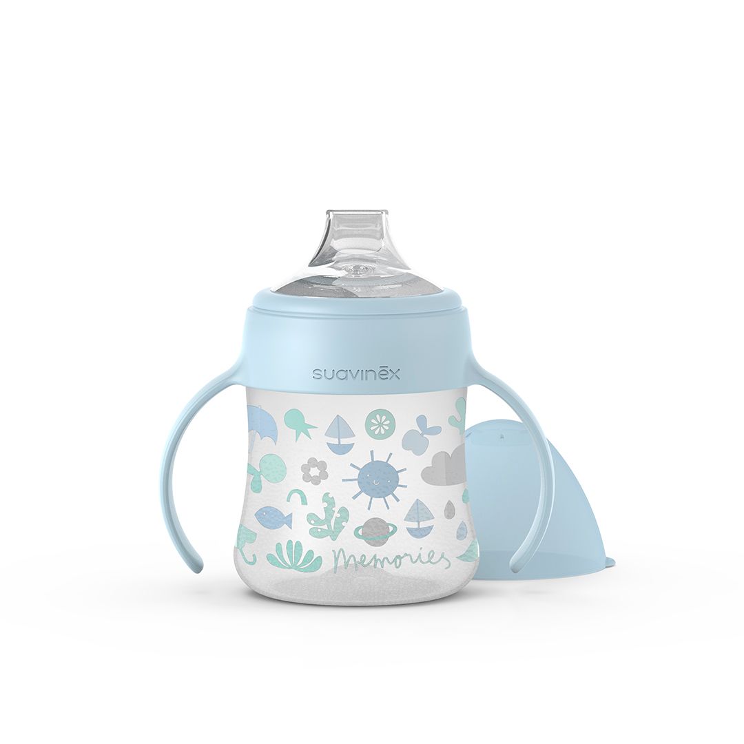 SUAVINEX | Fľaša MEMORIES prvá s oušky 150 ml – modrá s obrázky
