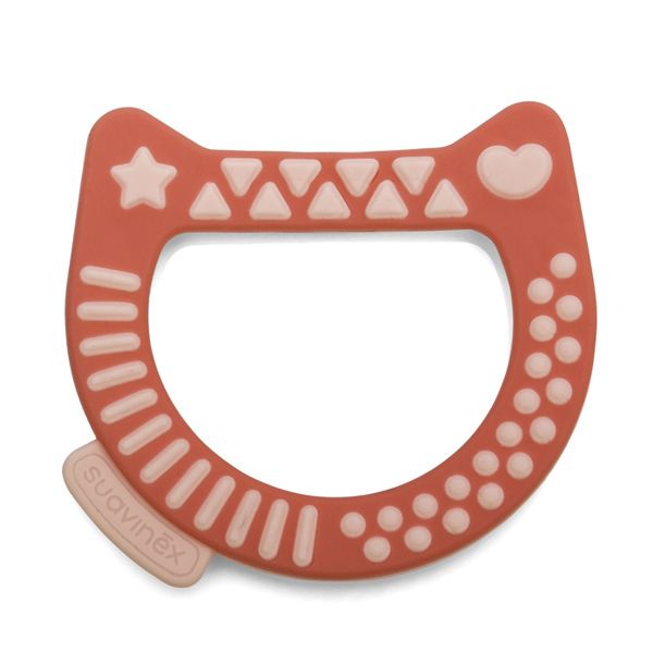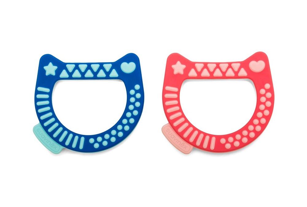 Hryzátko v tvare mačiatka s drobnými výstupkami pre úľavu pre detské ďasná v praktickom boxe pre hygienickú prepravu. Evolučné hryzátka sú bezpečné, ergonomické, ľahké a veľmi zábavné.
