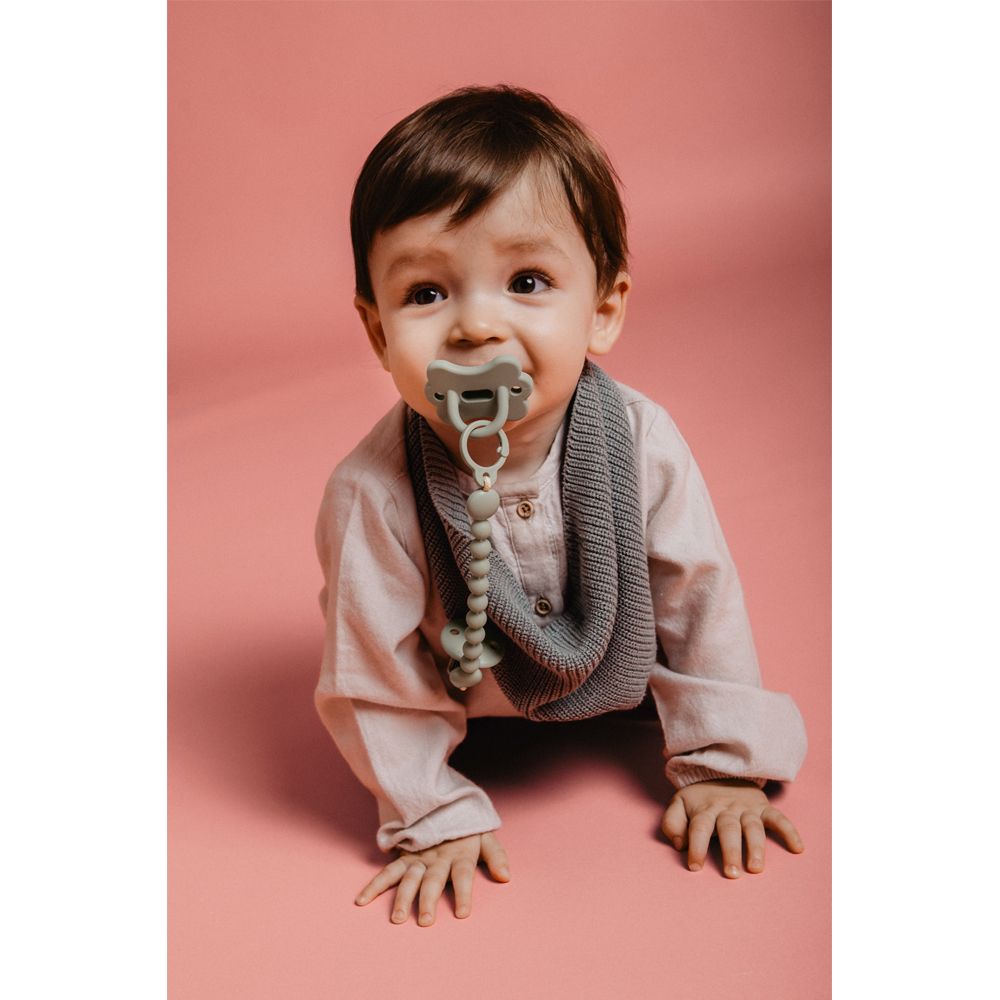 Krásny a praktický klip umožňuje upevniť cumlík na oblečenie dieťaťa a predchádza jeho prípadnému spadnutiu na nečistú zem alebo jeho strate.