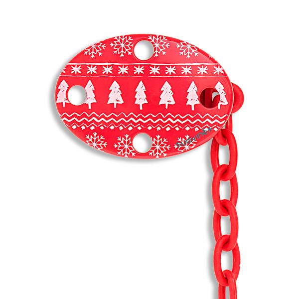 Oválny klip s veselými obrázkami a retiazkou, ku ktorému pohodlne pripnete cumlík. Klip umožňuje upevniť cumlík na oblečenie dieťaťa a predchádza prípadnému upadnutie cumlíka na nečistú zem alebo jeho strate.