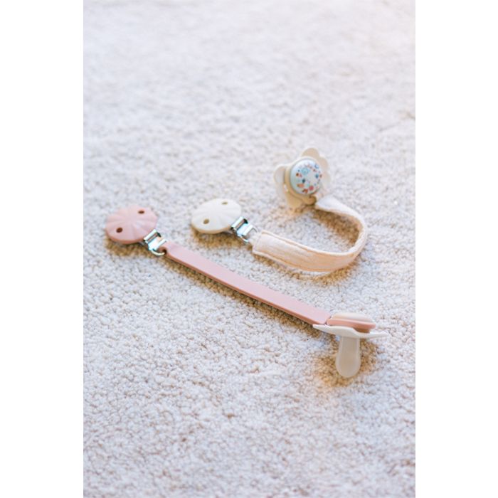Klip, umožňuje upevniť cumlík na oblečenie dieťaťa a predchádza jeho prípadnému spadnutiu na nečistú zem alebo jeho strate.