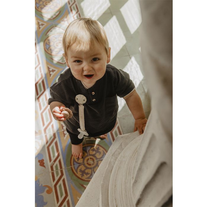 Klip, umožňuje upevniť cumlík na oblečenie dieťaťa a predchádza jeho prípadnému spadnutiu na nečistú zem alebo jeho strate.