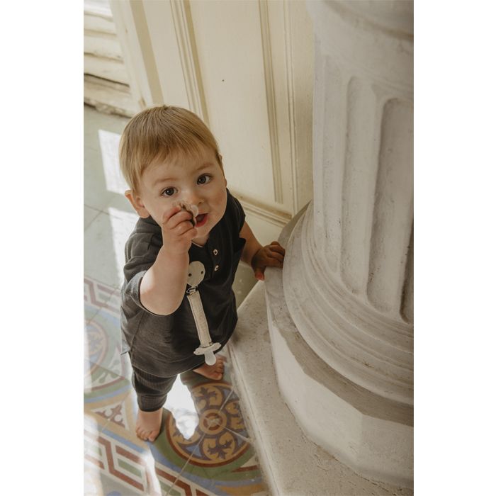 Klip, umožňuje upevniť cumlík na oblečenie dieťaťa a predchádza jeho prípadnému spadnutiu na nečistú zem alebo jeho strate.