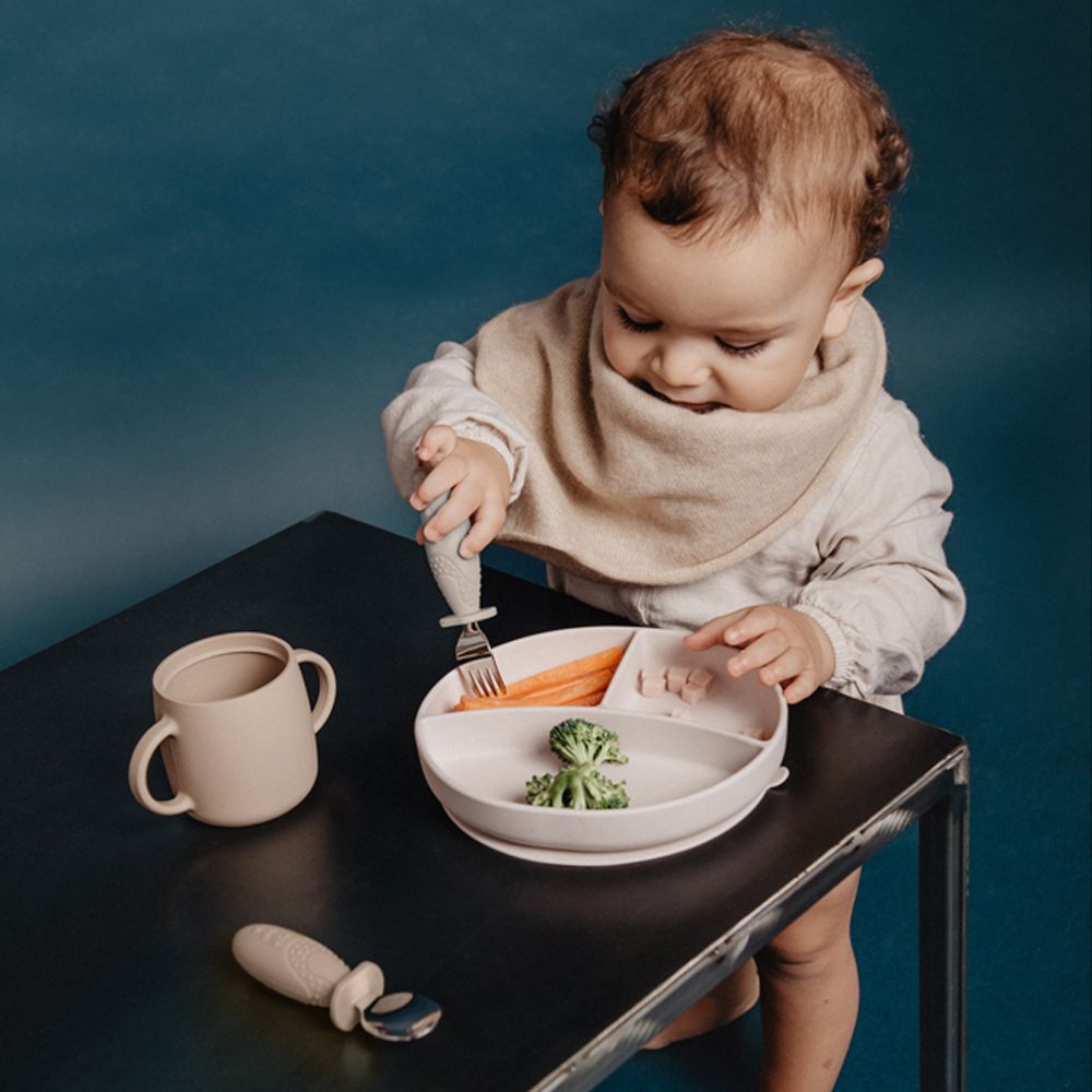 S touto sadou sa malí stravníci ľahko naučia zaobchádzať s príborom. Ergonomický tvar a mäkké silikónové rukoväte padnú deťom skvele do ruky a podporujú správny úchop.