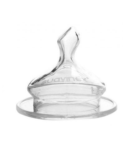 Pri výrobkoch Suavinex máte tiež možnosť voľby materiálu náhradných cumlíkov – latexové/silikónové a možnosť výberu veľkosti prietoku náhradného cumlíka – S, M a L (od najmenšieho po najväčšie).