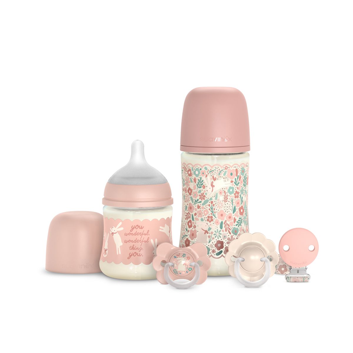 – 1 fľašu s objemom 150 ml s fyziologickou silikónovou savičkou SX Pro s pomalým prietokom S. Malý otvor savičky prepúšťa malé množstvo tekutiny. Ideálne pre prvé dni života novorodenca. Široké hrdlo fľaše umožňuje rodičom jednoduchšie čistenie a prípravu pokrmu, fľaša je stabilnejšia.