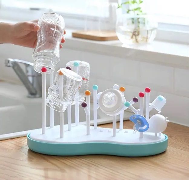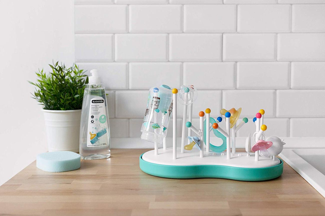 Nechajte odkvapkať detské potreby na tomto šikovnom odkvapkávačmi v modernom dizajne šetriacom miestom. Odkvapkávač značky Suavinex má krátke a dlhé praktické kolíky na dojčenské fľaše, hrnčeky, cumlíky, náhradné cumlíky a iné príslušenstvo a zaguľatený povrch, aby voda dobre odtekala.