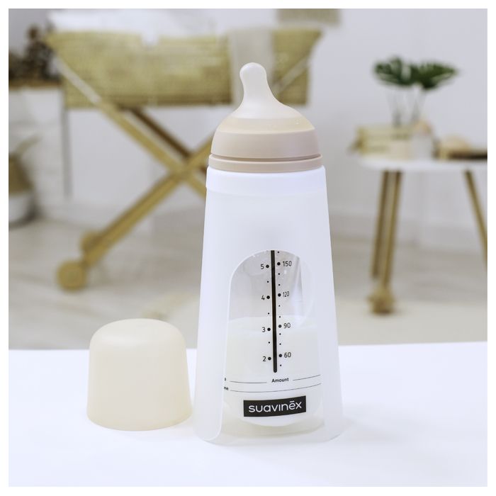 * Vyžaduje adaptér a držiak, ktorý je súčasťou prsné odsávačky Suavinex. Krmení musí vždy vykonať dospelý.