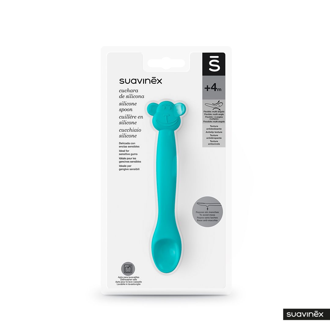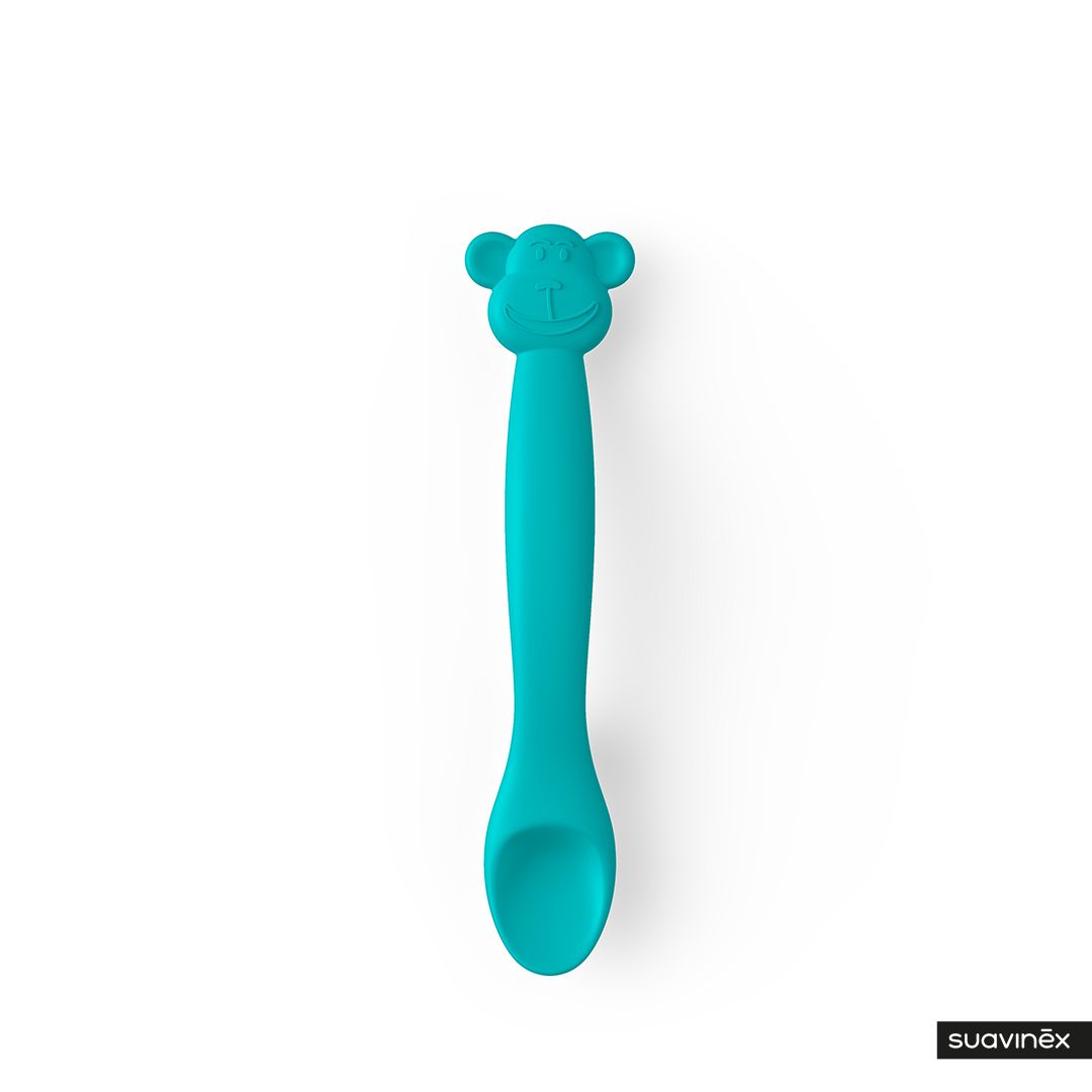 SUAVINEX | Silikónová lyžička OPIČKA – ZELENÁ