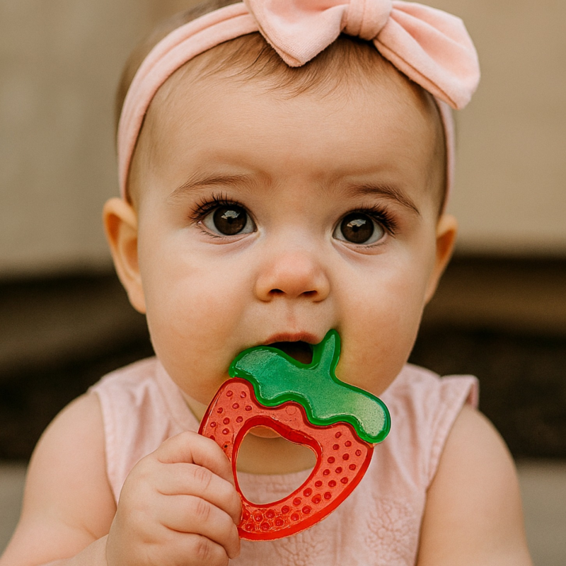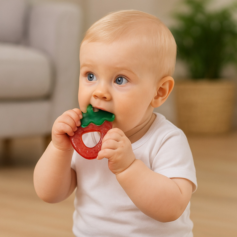 Súprava dvoch chladivých hryzátok v tvare jahôdok, ktorá prináša úľavu pri prerezávaní zúbkov. Príjemne chladí citlivé ďasná a pomáha zmierniť nepohodlie dieťaťa. Veselé farby a roztomilé tvary navyše podporujú zmyslový rozvoj a zabavia malé ručičky.