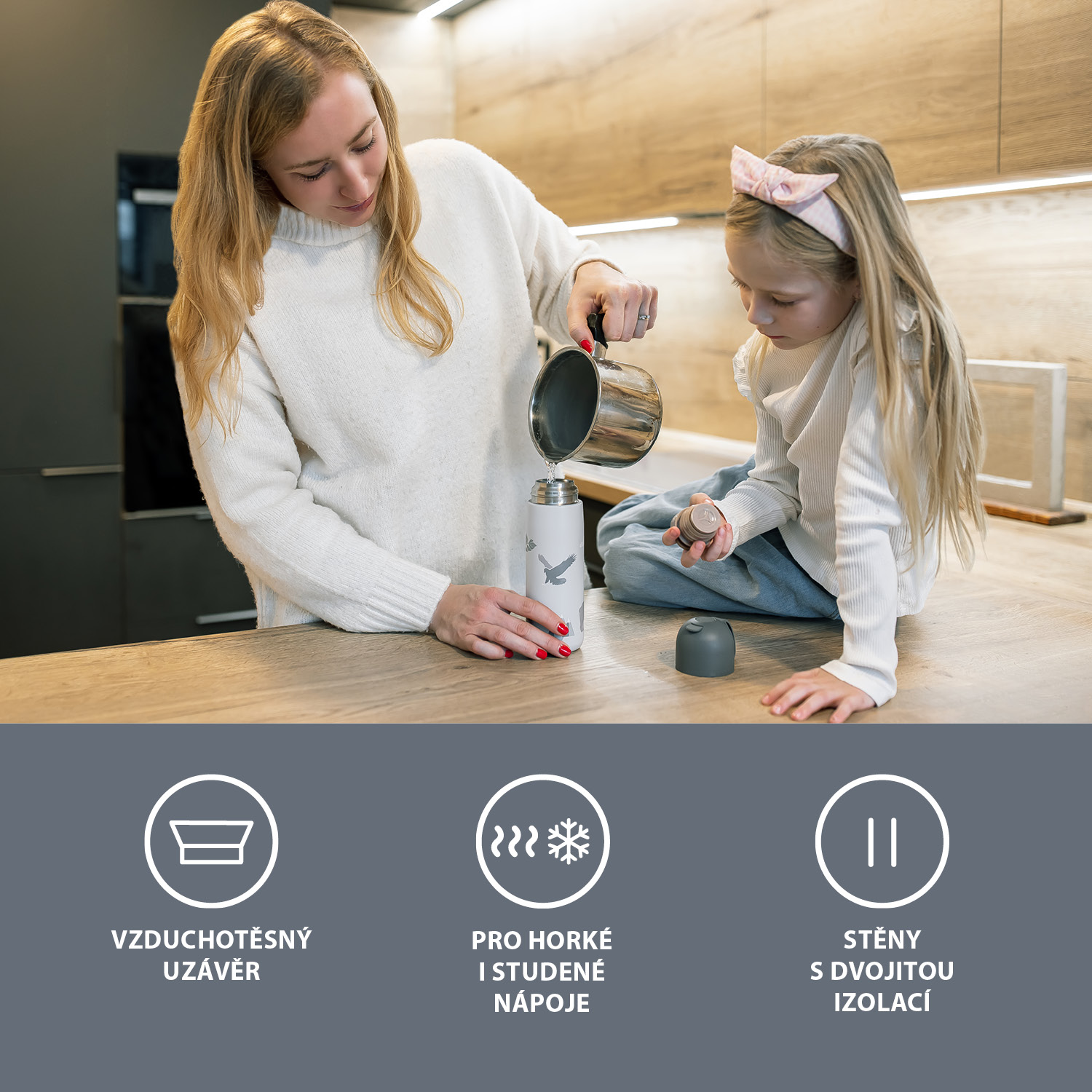 môžete byť istí aj tým, že dieťa tekutinu z termosky nevyleje. Viečko termosky