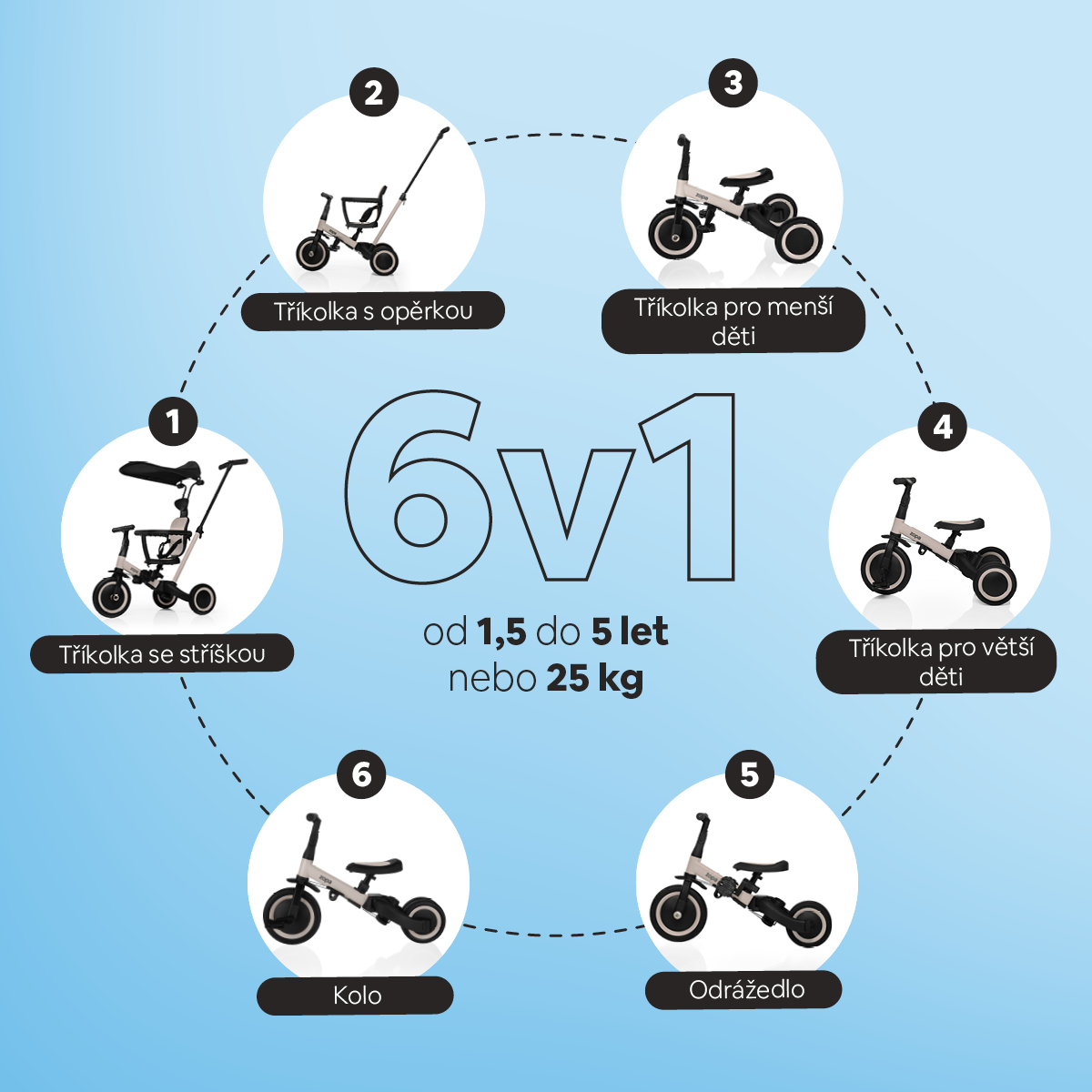 prestavať – bez potreby náradia. Prechod z trojkolky na odrážadlo či bicykel je