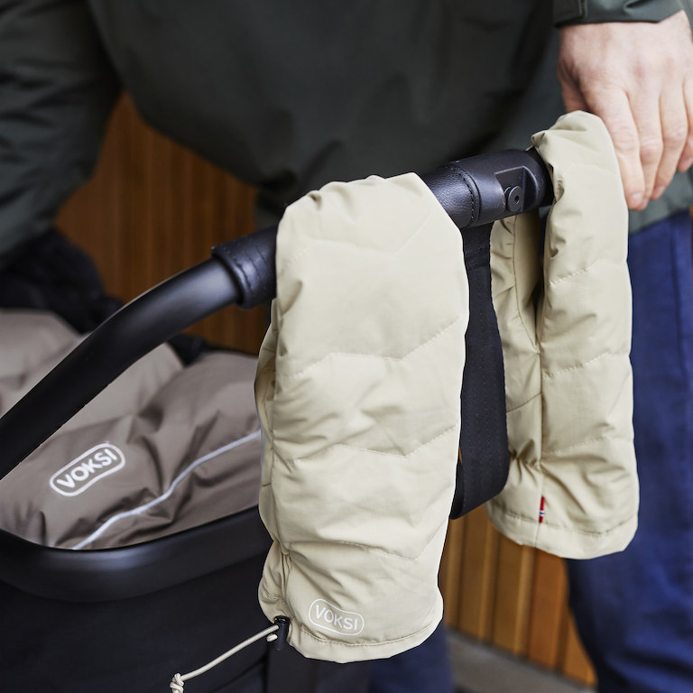 Rukavice sú navrhnuté tak, aby sa zmestili na všetky ruky aj typy kočíkov. Pripevnite palčiaky ku kočíku tak, že na špičke rukavice otvoríte suchý zips a umiestnite ho okolo rukoväte. Jednoduchú šnúrku na strane možno zatiahnuť rukavice, aby obopli zápästie a nedostala sa do nich zima. Kombinujte a zlaďte farby rukavíc s fusakmi a detskými topánočkami Voksi.