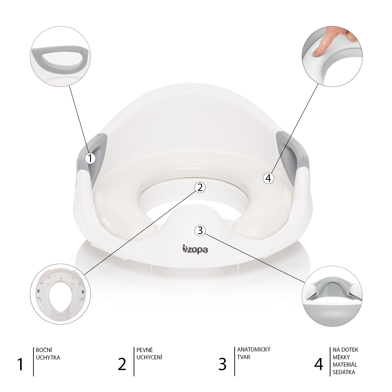 Prechod z nočníka na bežný záchod je pre každé dieťa veľkou zmenou. S praktickým pomocníkom – záchodovým sedadlom ZOPA Coach – to však zvládnete hravo. Sedadlo je vyrobené z odolného, netoxického plastu bez BPA, ktorý bol testovaný na bezpečnosť. Pre maximálne pohodlie je k pevnej konštrukcii sedadla pripevnená mäkká nepremokavá vložka, ktorá je odolná voči prasklinám a