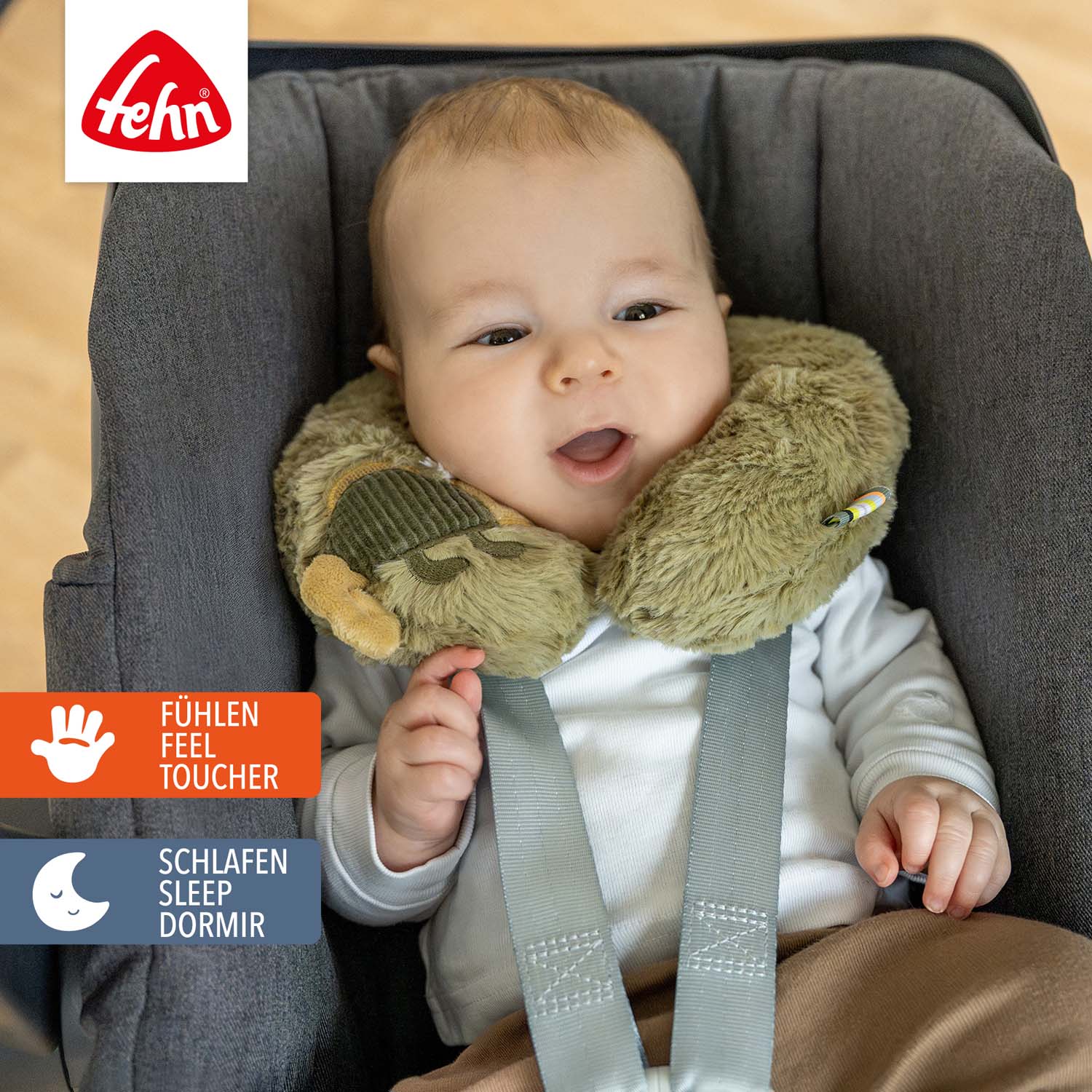 opierke krku – či už v aute, autosedačke alebo kočíku. Plyšový chameleón zabaví