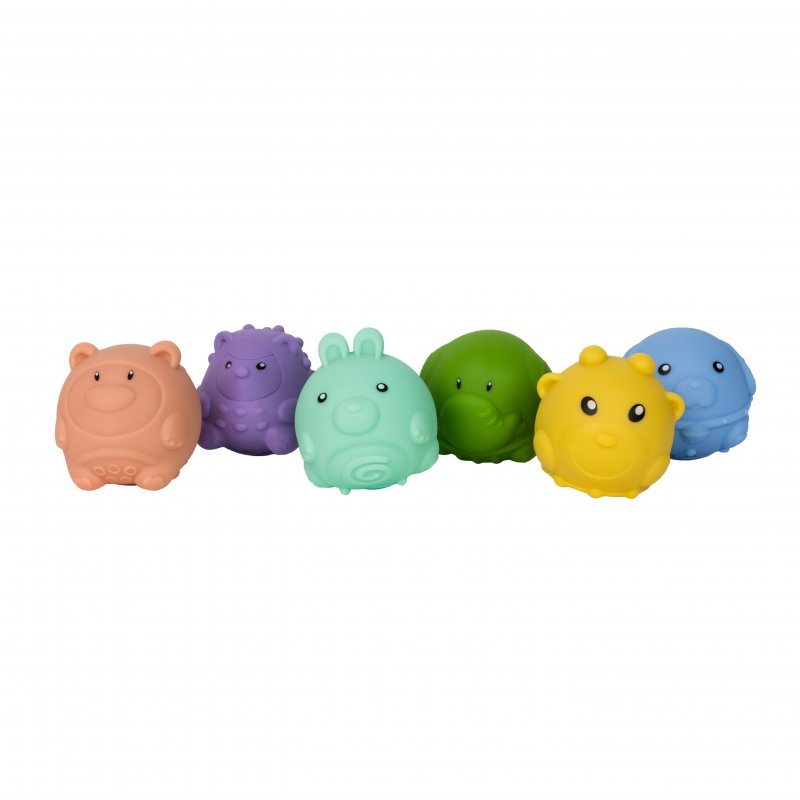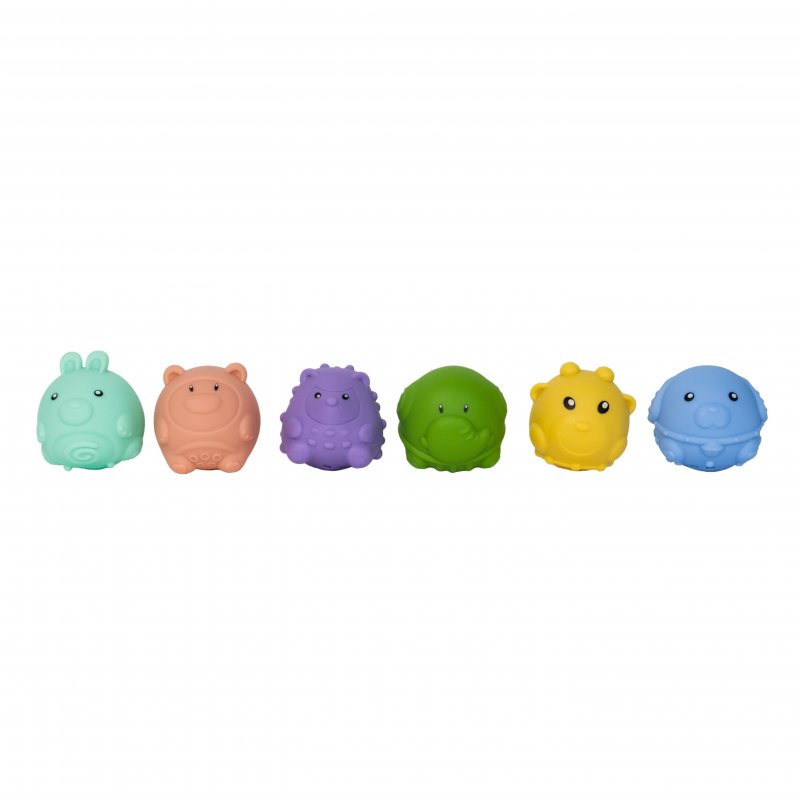 Súprava 6 mäkkých loptičiek v tvare rôznych zvieratiek, ktoré po zatrepaní pískajú. Vďaka špeciálnym profilovaným výstupkom rozvíjajú jemnú motoriku a detskú fantáziu. Tvary zvieratiek povzbudzujú deti k hre a učeniu rozpoznávať zvieratká a farby.